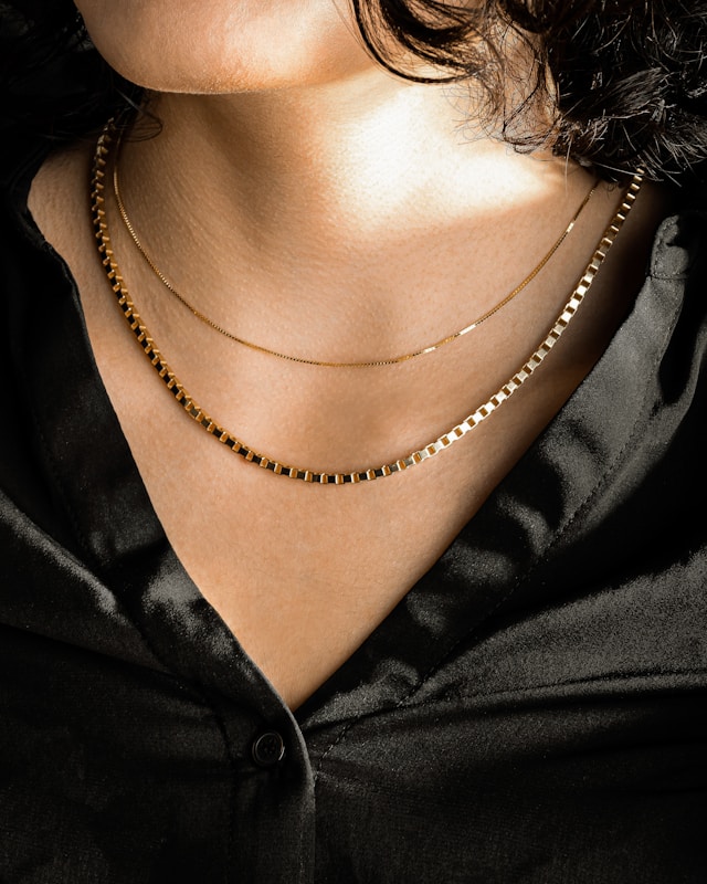 アクセサリーを使うことで視線を、のどぼとけからそらすことができます。ネックレスやチェーンは、のどぼとけを完全に隠すことはできないが、首元に注目を集めることで、のどぼとけの印象が薄くなるので自然に隠すことができる。